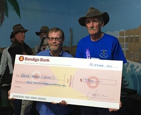 Mayor Batten when introducing the person who would unveil the sculpture, said that “There is no other way to describe this person other than Mr Coo-ee”, and “He was pivotal in the 1987 re-enactment march, he lives and breathes the Coo-ee story every day with his museum and again has asked ‘Will you come’ and join the 2015 Centenary re-enactment march.”