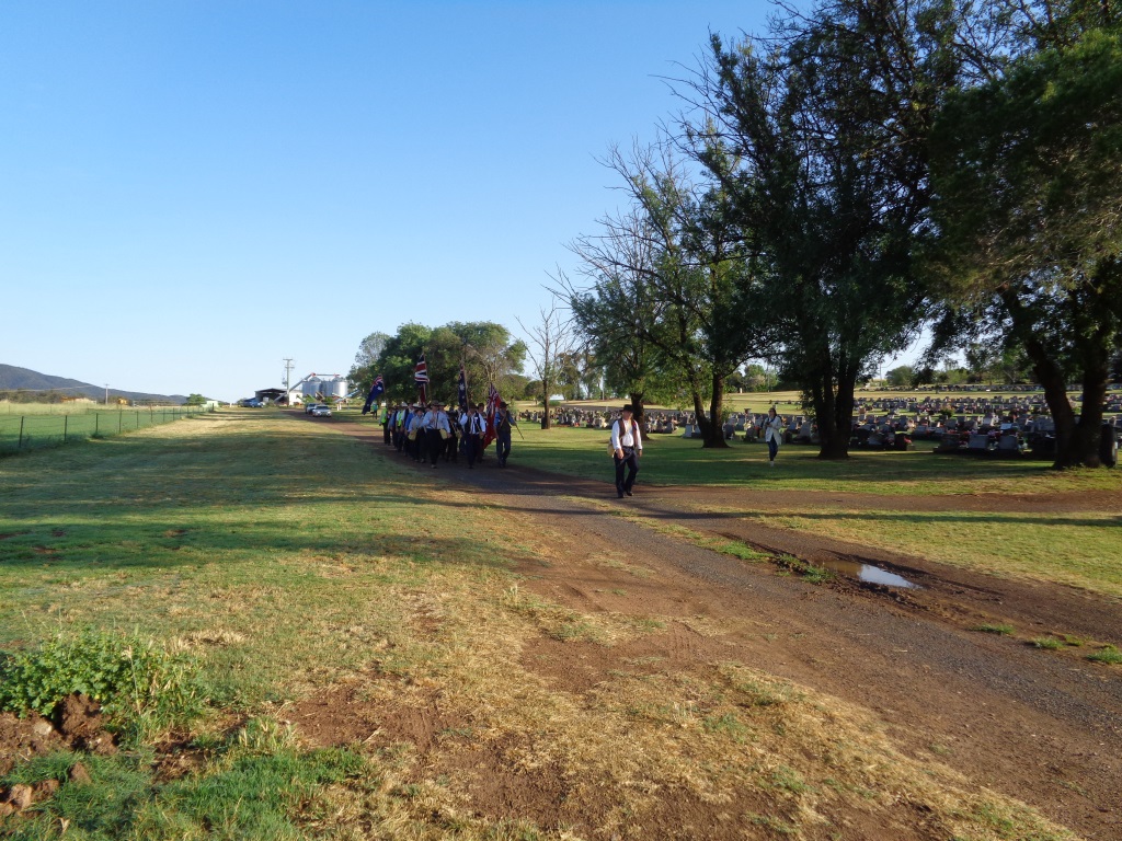 Helen Thompson gave a description of the events that occurred when the Coo-ees were in Mumbil on 19th October 1915, and named the six Coo-ees that were attested at Mumbil (who had undertaken their medical examinations at Wellington, where they had run out of application forms). Don Kenaugh and Eric McCutcheon read poems, and a group of the marchers sang Keep on until the end of the road, and the National Anthem. The students then sang a song about their school.