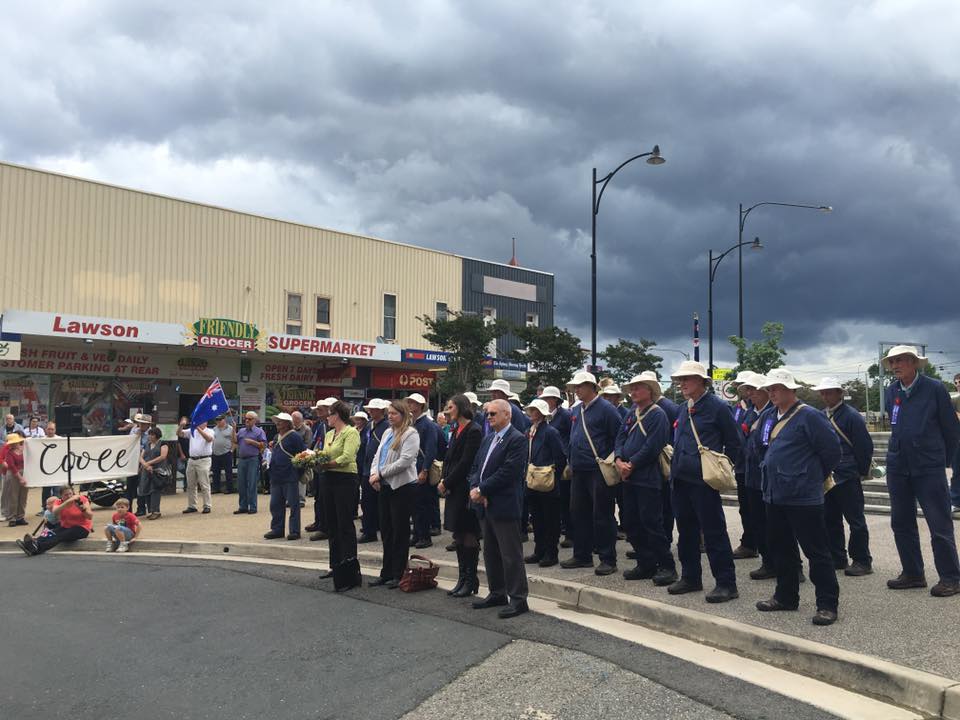 A commemorative service was held at Lawson War Memorial at 2 pm, followed by lunch at the Blue Mountains Hotel, which was provided by the Lawson Combined Services Social Club.