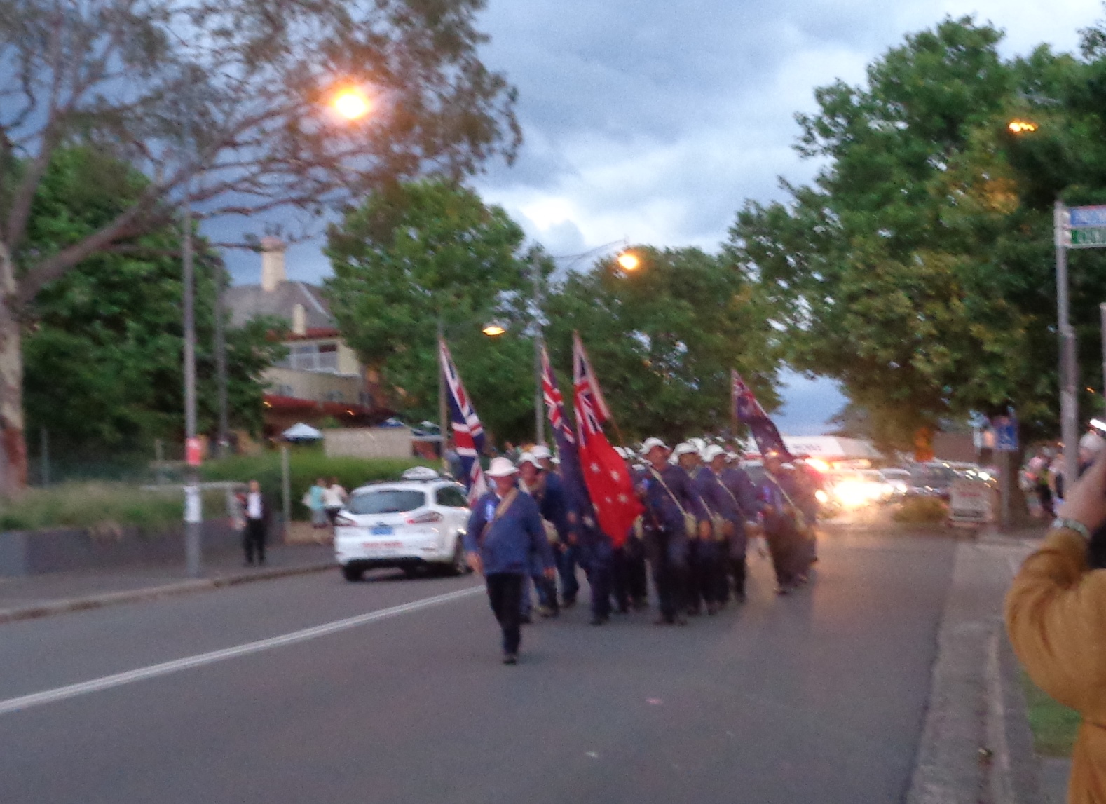 The marchers then marched to Springwood, where they arrived about 7.30 pm, just in time for another commemorative service at the Springwood War Memorial at 7.40 pm.  It started raining just after the service.
